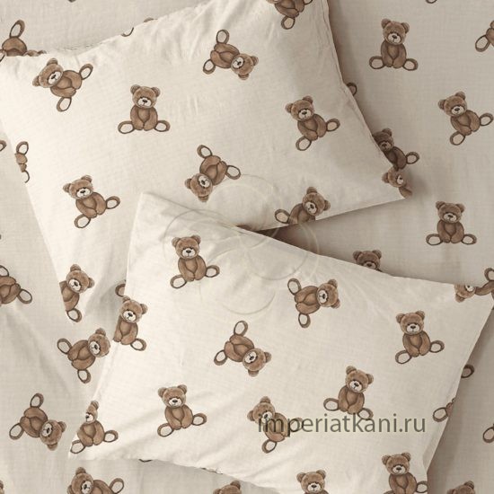 Бязь детская «Мишки» шириной 150 см с изображением на ткани — плюшевые мишки; цветовая гамма: кофе с молоком, светло-коричневая. Опт от 30 000 руб., продажа рулонами.